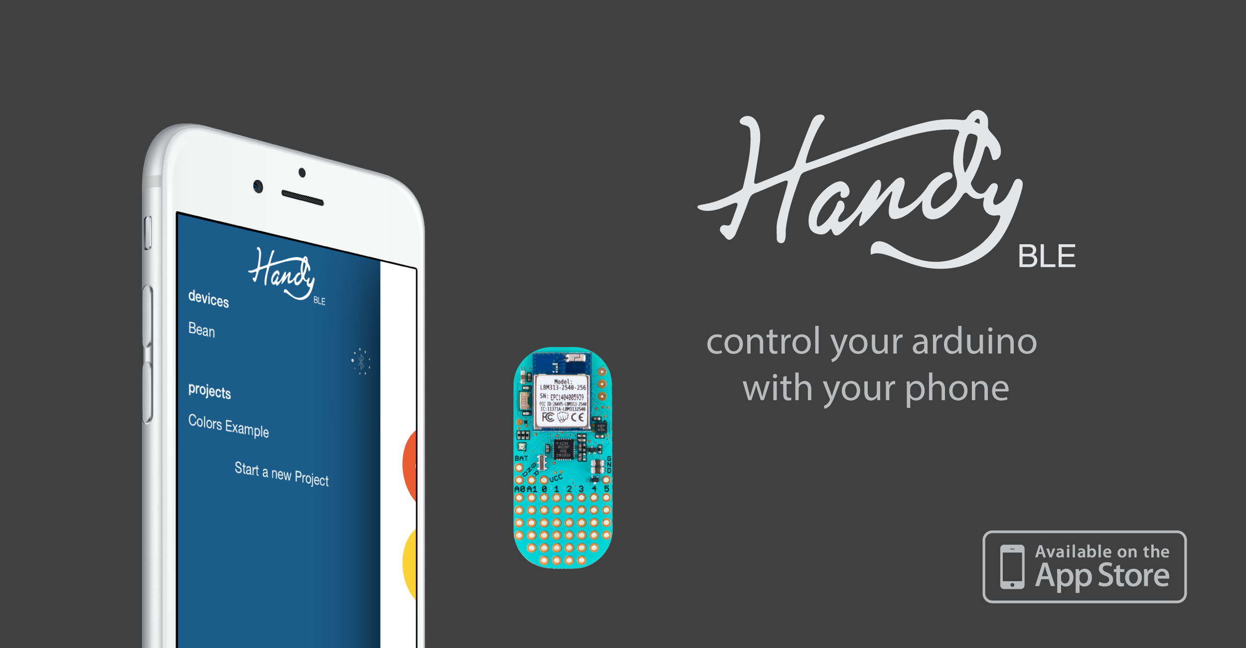 Control the world around you through Bluetooth Low Energy and the Handy BLE app. Create a custom interface in minutes that can communicate directly to your Arduino project.